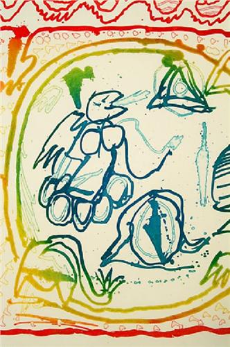Alechinsky, Pierre (Belgium b. 1927) color aquatint, signed and edition 124 of 300, 22 1/2" by 15 3/4".