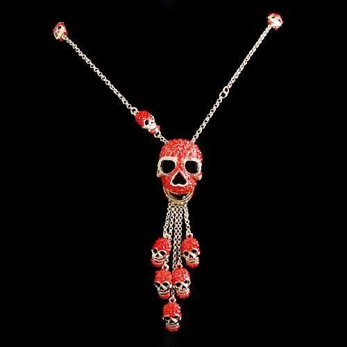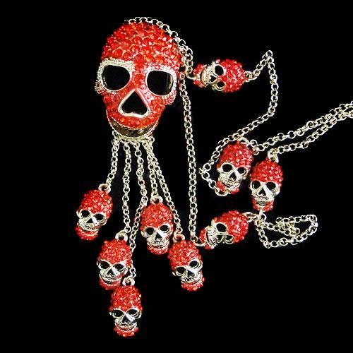 Red Swarovski Crystal Skull Pendant Necklace pendant Measures approx 4.75IN long by 1.25 IN wide mwf2310