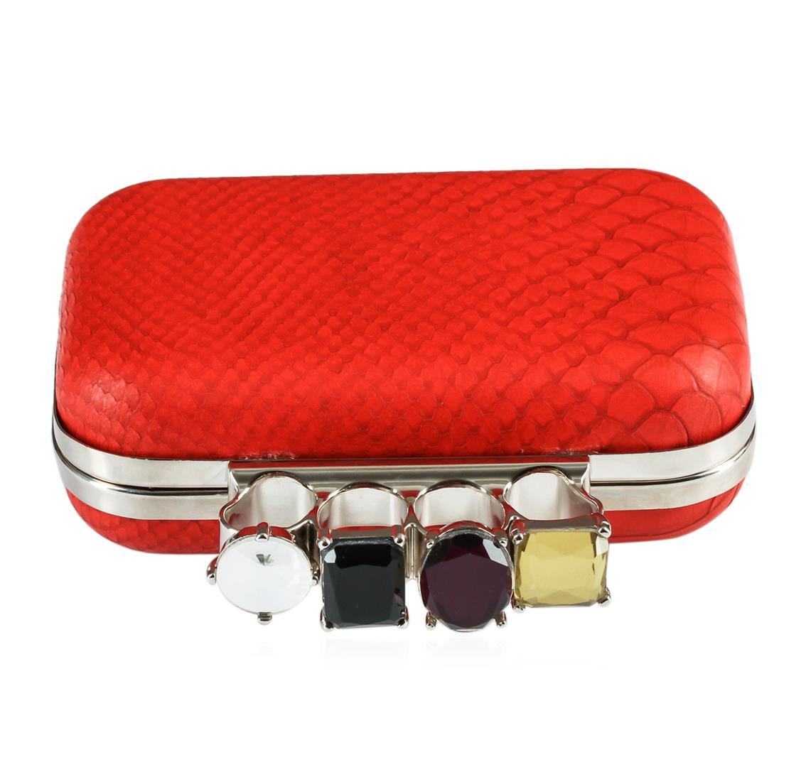 A Beautiful Red Textured Evening Clutch with accent stones.