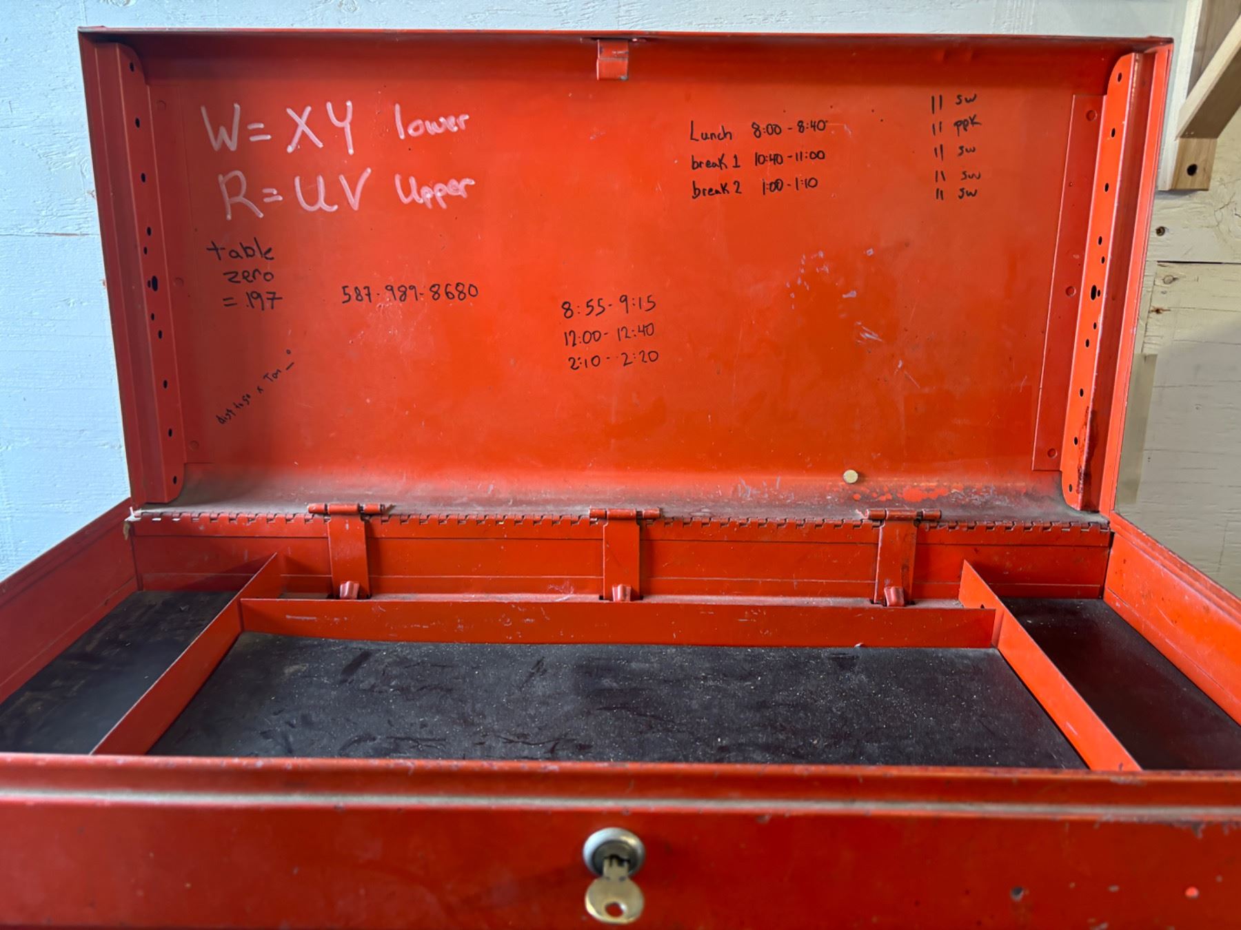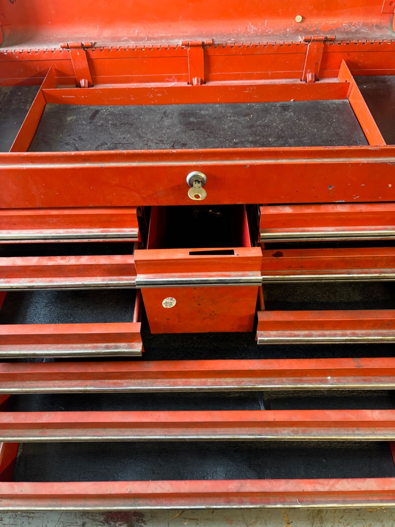Has dirt titans and wear, one key, 26"L x 12"W x 19"W