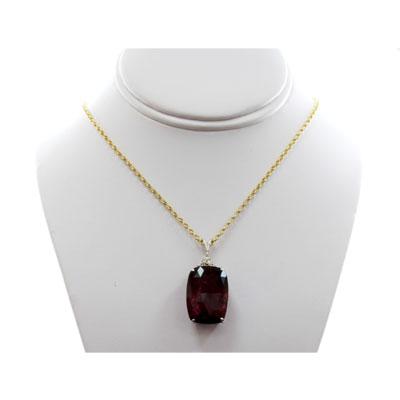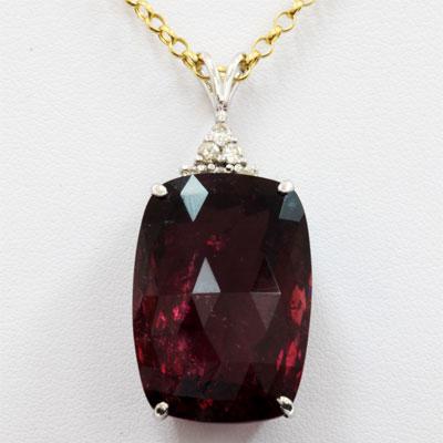 Mainstone: Red Tourmaline ; Total CTW: 53.34 ; Metal Purity: 14kt ; Diamond Count: 3 Round ; Clarity: SI2 ; Diamond Color: G-H ; Gem Count 1: 1 Cushion Cut ; MSRP: $14777