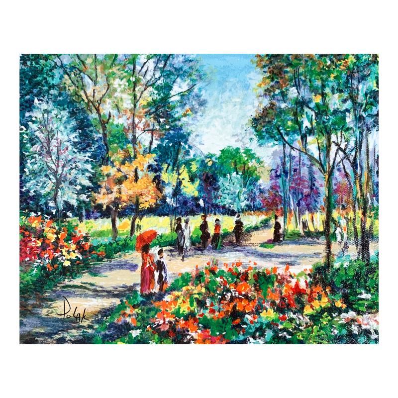 "Red Umbrella" is a limited edition serigraph on canvas by Dimitri Polak (1922-2008). It is numbered and hand signed and includes a letter of authenticity. Measures approximately 14" x 12" (image).