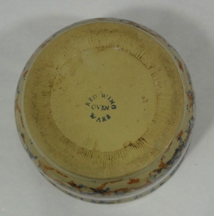 Red Wing Oven Ware stone ware bowl, approximately 4 1/2" tall and 7" wide. Stamped Red Wing Oven Ware on bottom. Est Value $20.00-45.00