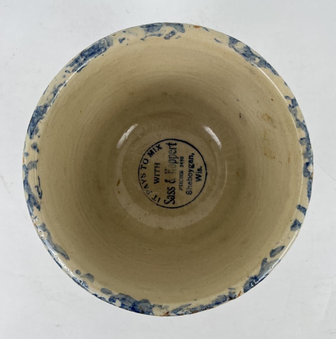 Advertising in the bottom from Sass & Hoppert Sheboygan Wisconsin. 7 1/2" diameter. 4 1/2" tall.