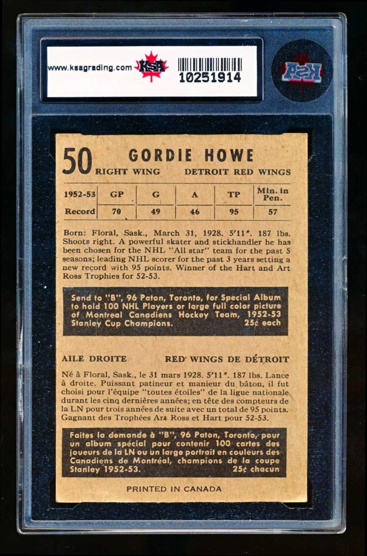 Red Wings Gordie Howe #9, (1953-54) Card #50, printed by Parkhust graded KSA: VGE-4.