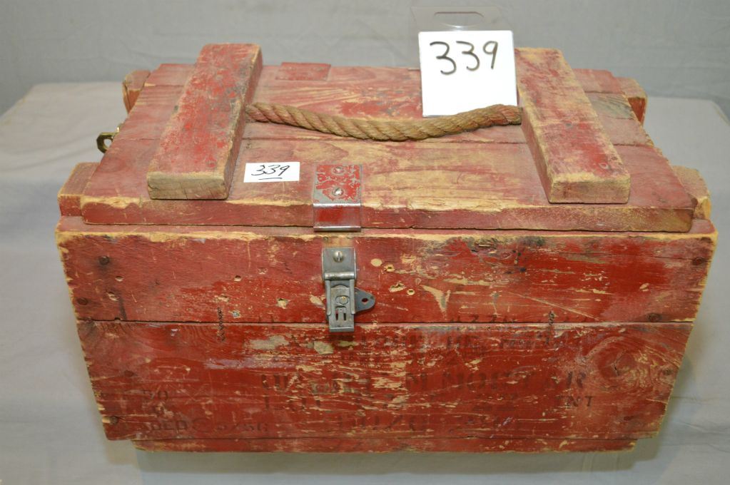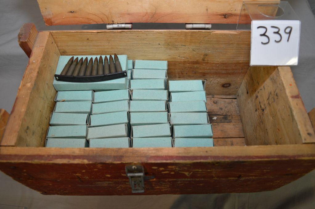Red Wooden Ammo Box : 35 Boxes ( 20 rds ) Military Ammo in zip clips - box not marked w/ caliber ?