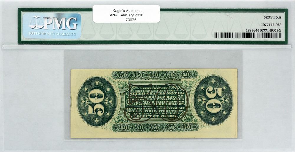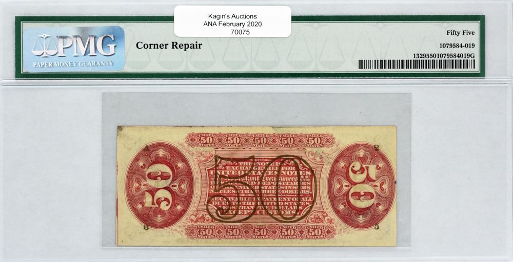 This Third Issue pairing consists of: Fr. 1329. 50 Cents. PMG About Uncirculated 55, “Corner Repair”. Autographed signatures of Allison and Spinner; Fr. 1333. 50 Cents. PMG Choice Uncirculated 64.