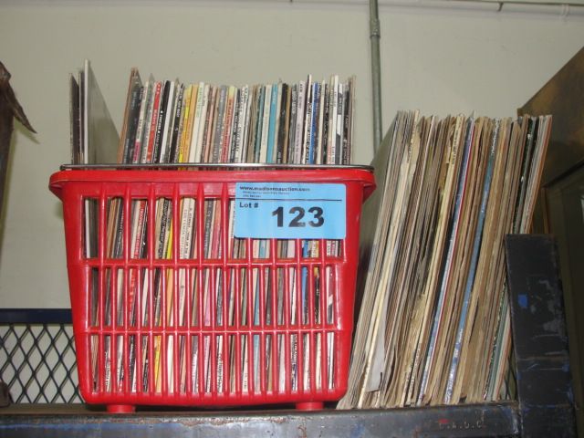 Red basket of vintage records