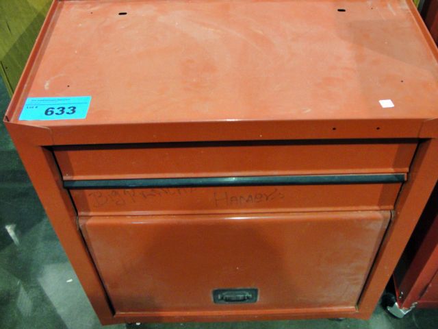 Red metal rolling tool cabinet and contents