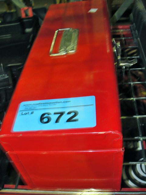 Red metal toolbox and contents