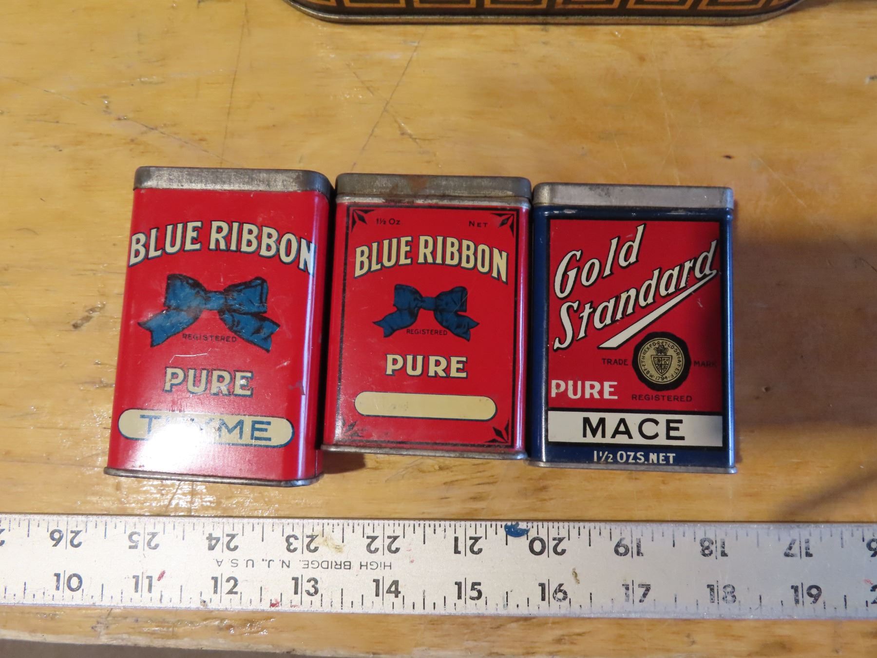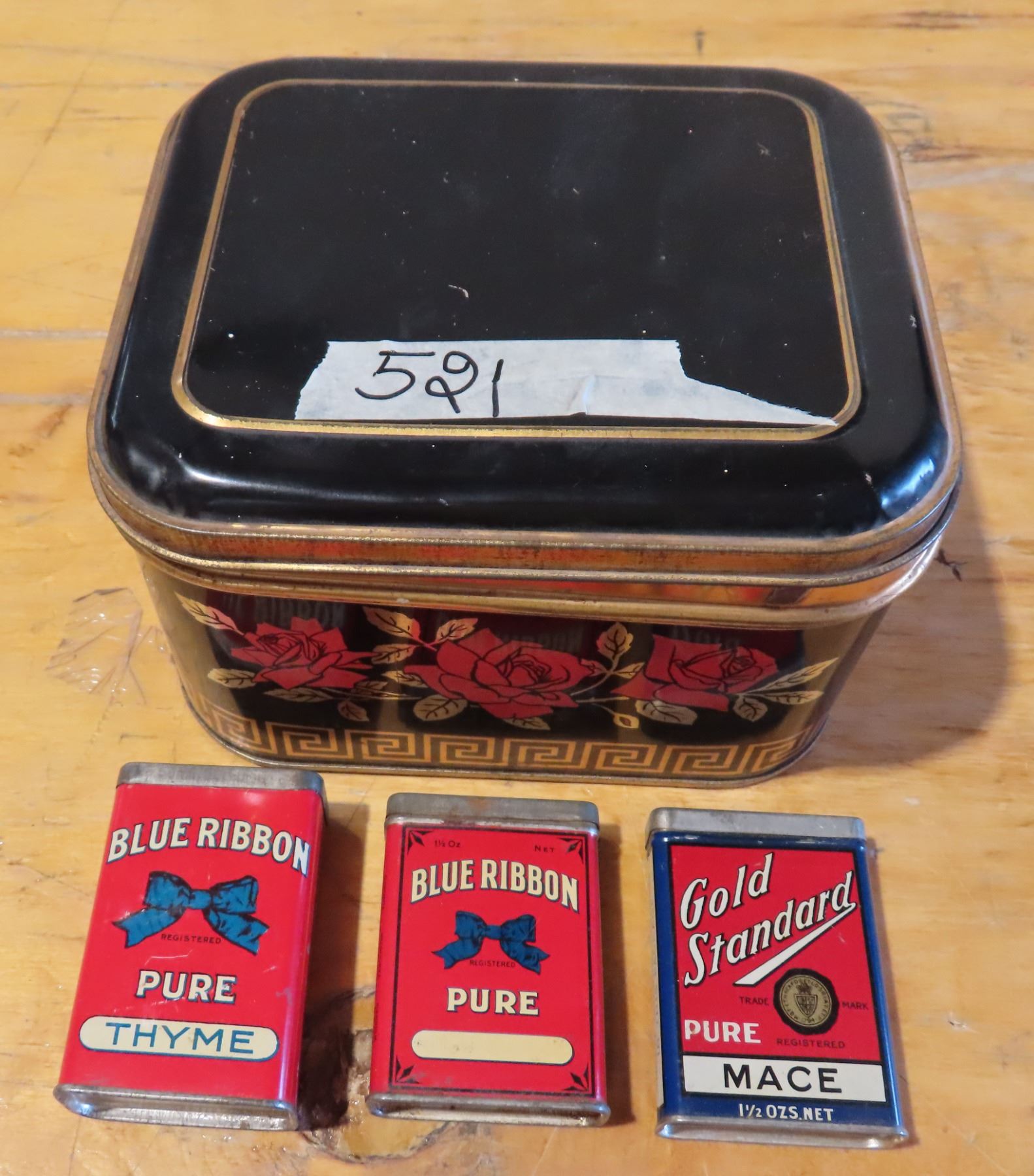 Red rose tea tin & 3 spice tins