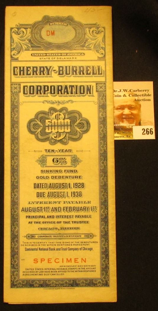 Red stamped "Specimen" "United States of America State of Delaware Cherry-Burrell Corporation $5000 Ten-Year 6% Sinking Fund Gold Debenture Dated August 1, 1928…".