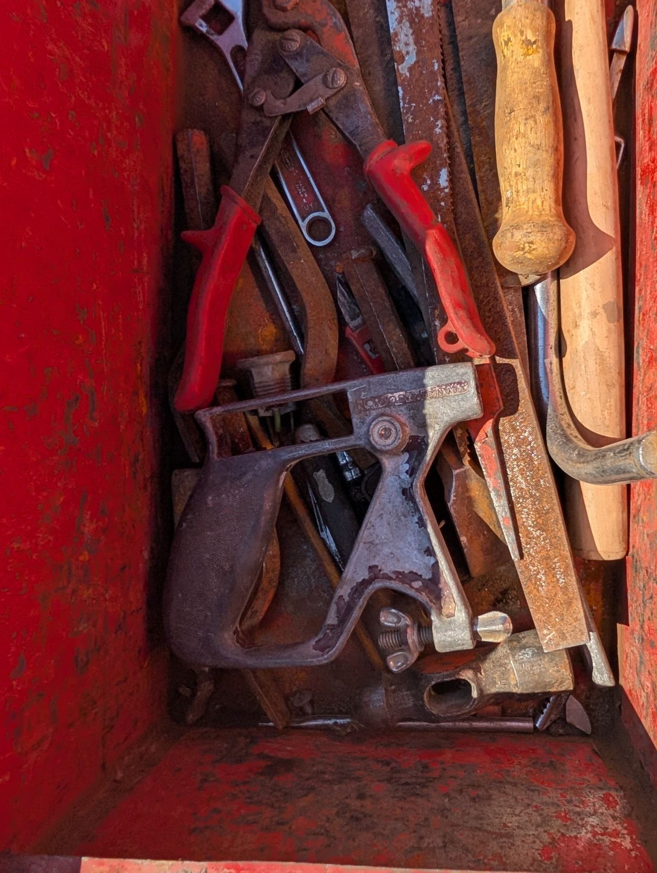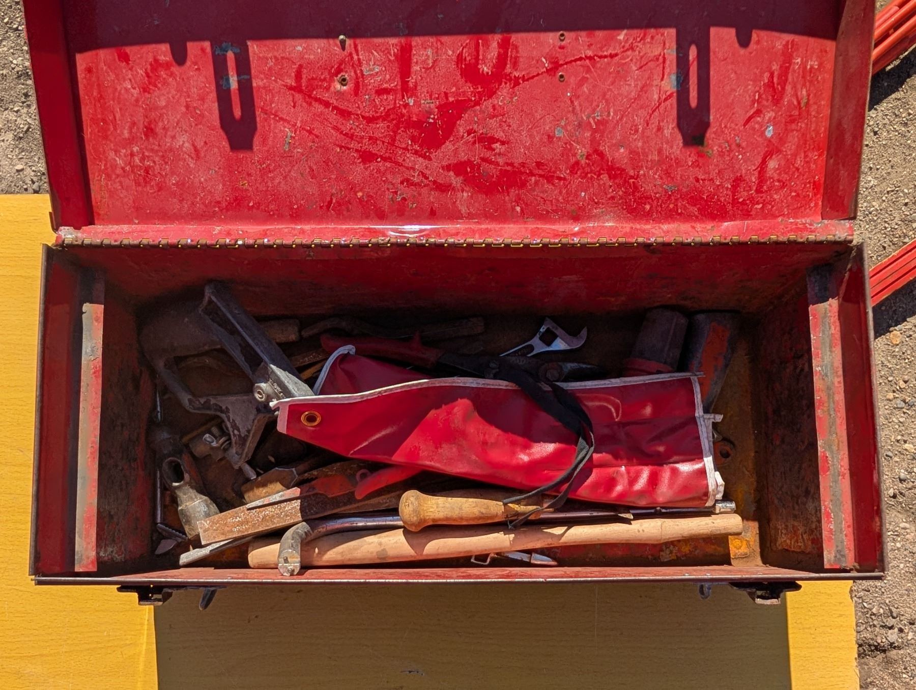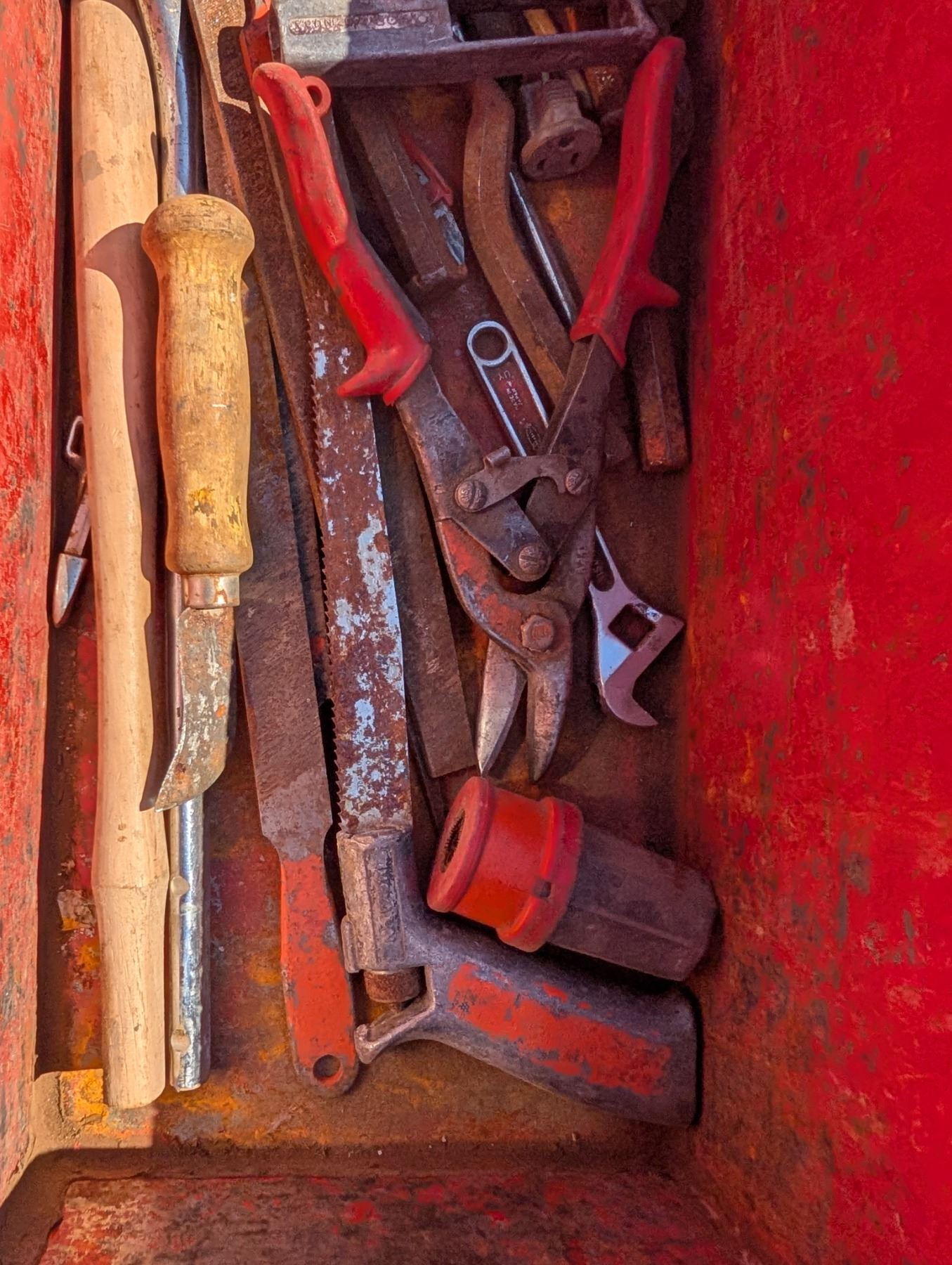 Red tool Box (21"x9"x9") (ok Condition) w/ Misc. Tools