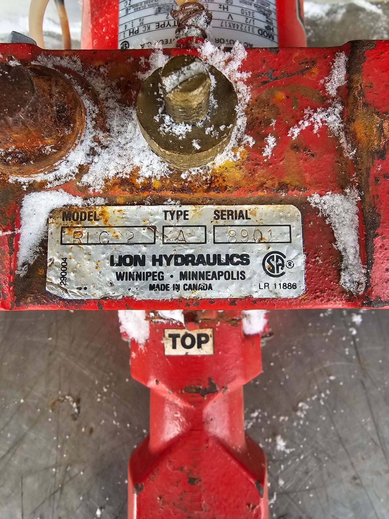AC motor: 1/2HP, model# 3J724AX17, type KC, PH1, 115V. Lion Hydraulics: model# RLC-2, type A, serial# 8901.