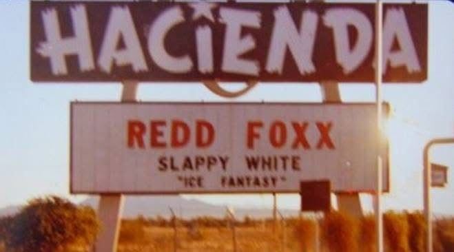 Original backlit acrylic sign for Red Foxx's residency show at the Hacienda resort in Las Vegas.