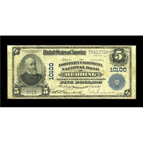 <B>Redding, CA</B></I> - $5 1902 Plain Back Fr. 602 <B>The Northern California NB</B></I> Ch. # 10100<BR>Just three $5 Plain Backs are listed in the census for this Shasta County issuer. <B>Fine,</B></I> with nice centering and full strength black ink signatures from the officers.<BR><BR><b>Shipping:</b> Coin/Currency (<a target="_blank" href="http://www.heritageauctions.com/common/shipping.php">view shipping information</a>)