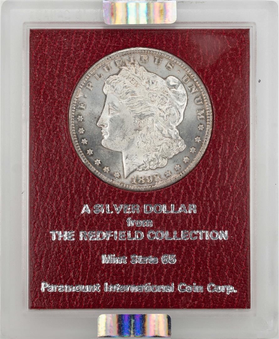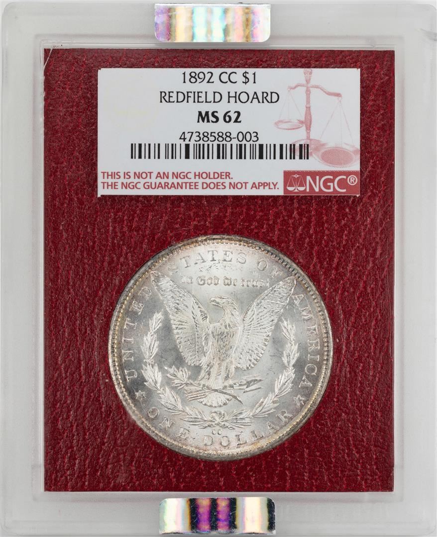 One Redfield 1892-CC $1 Morgan Silver Dollar Coin NGC MS62. NGC Certified.