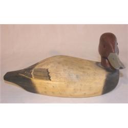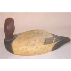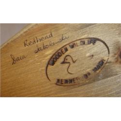 Redhead duck decoy by Dara Sabolewski with turned head. Signed on bottom and stamped with Wooden Wildlife seal. Body measures 12" and 6" tall to top of head.