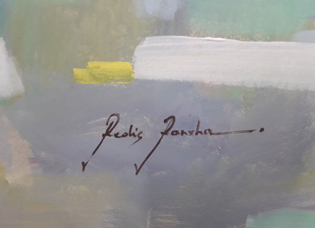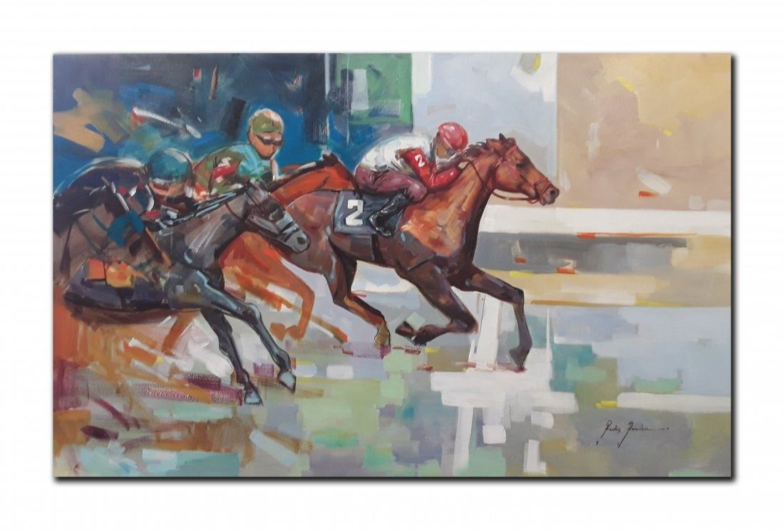 Redis Ranxa's "The Race" original acrylic painting on canvas. A stunning painting of three jockeys racing horses.36" x 48"