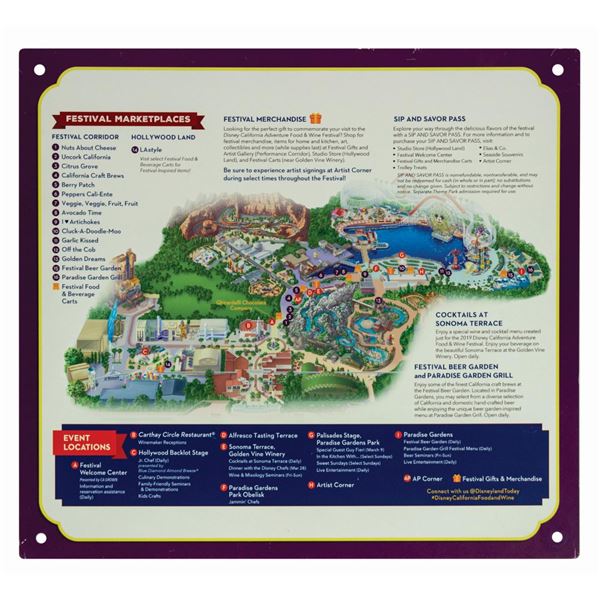 (California Adventure, c.2016) A pair of original park-used Food & Wine Festival signs from the 2019 event at California Adventure. Consisting o...