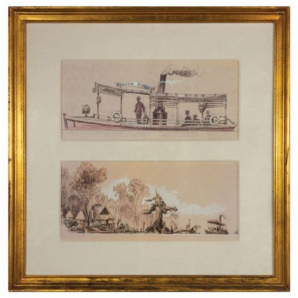 (Disneyland, c.1967) An original painting depicting a stylized map of Disneyland and its many attractions. This artwork was created at the time of the