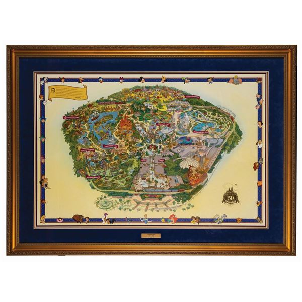 (Disneyland, 2005) A Disneyland souvenir map created for the park's 50th anniversary. The stylized illustrated map features the first appearance...