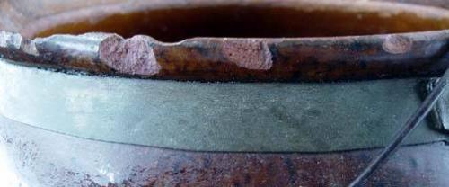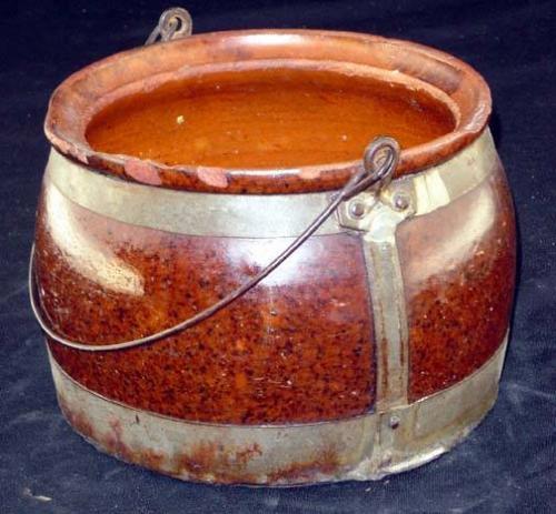 Redware Bean Pot, Metal Framed, 5.5" tall x 7" wide
