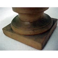 Redware sculpture, bust of woman, signed on base E. Trufot? 1880 on base, measures 19" high, crack on base Estimate 200/400