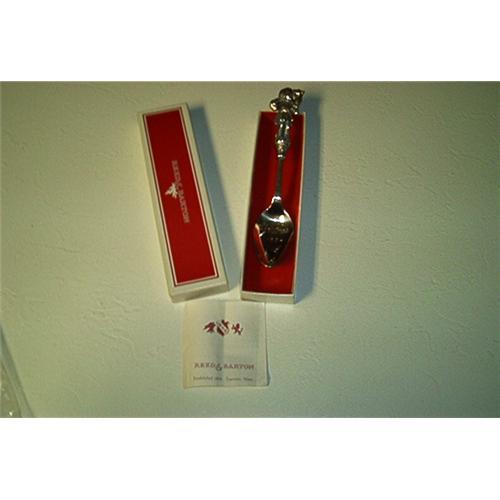 A charming, Silverplated Christmas spoon. Christmas 1984 inscribed in spoon, and the handle is a sculpture of a Sheperd Boy with a lamb wrapped around his neck. The spoon is still in the velvet lined Reed & Barton box, and still inside the plastic cover. The spoon measures 6 1/2 inches long. The Card Tag still inside the box. All in Mint Condition.