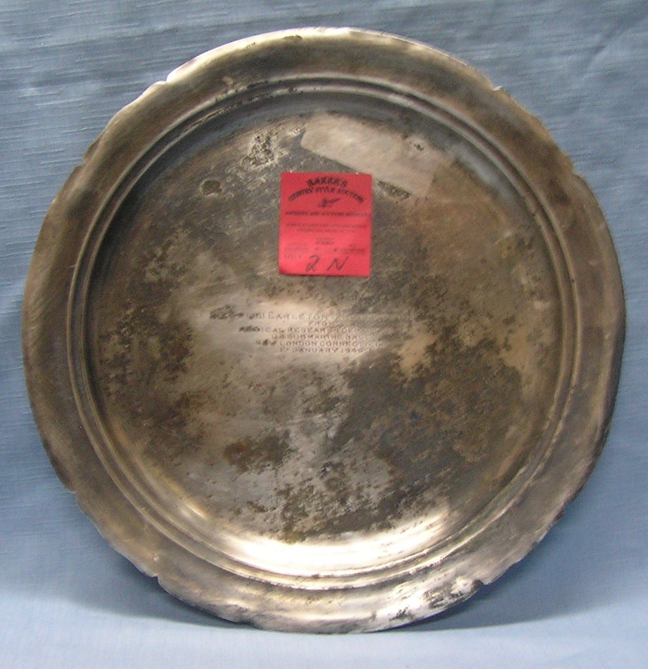 International Reed and Barton silver presentation award platter for Lt. J.G. Carleton J. Robertson U. S. Navy presented from the Medical research Dept. U.S. submarine base , New London Conn. , Jan. 17,1946 est. value $300.00-$350.00