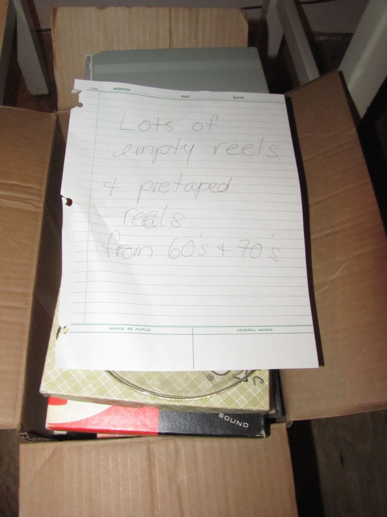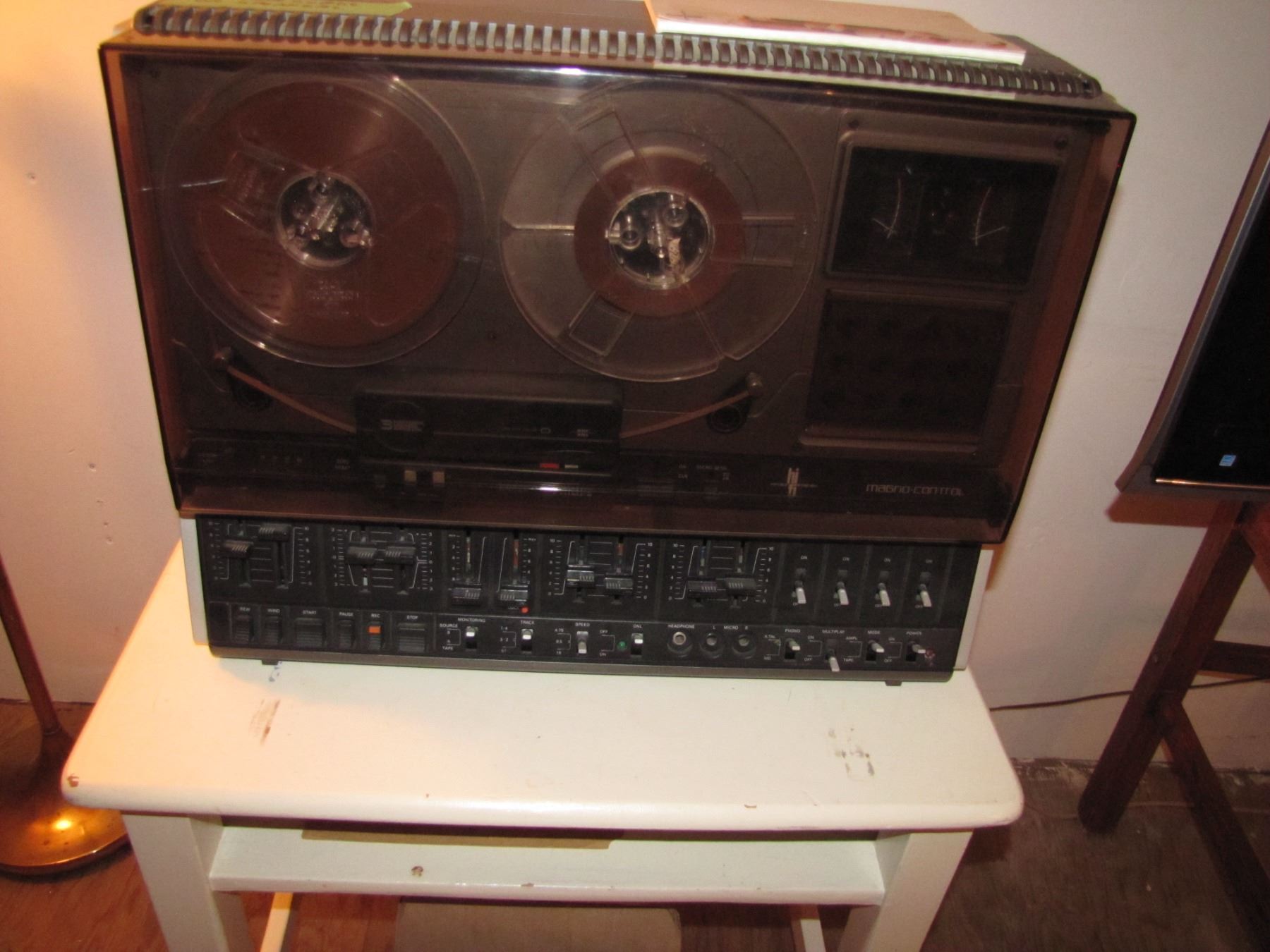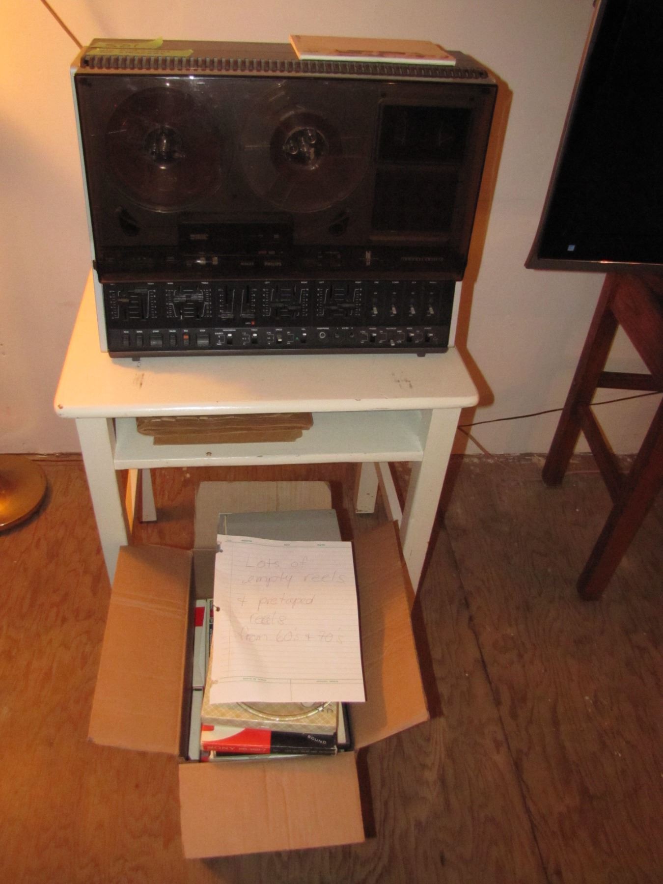Reel to reel recorder with a box of reels