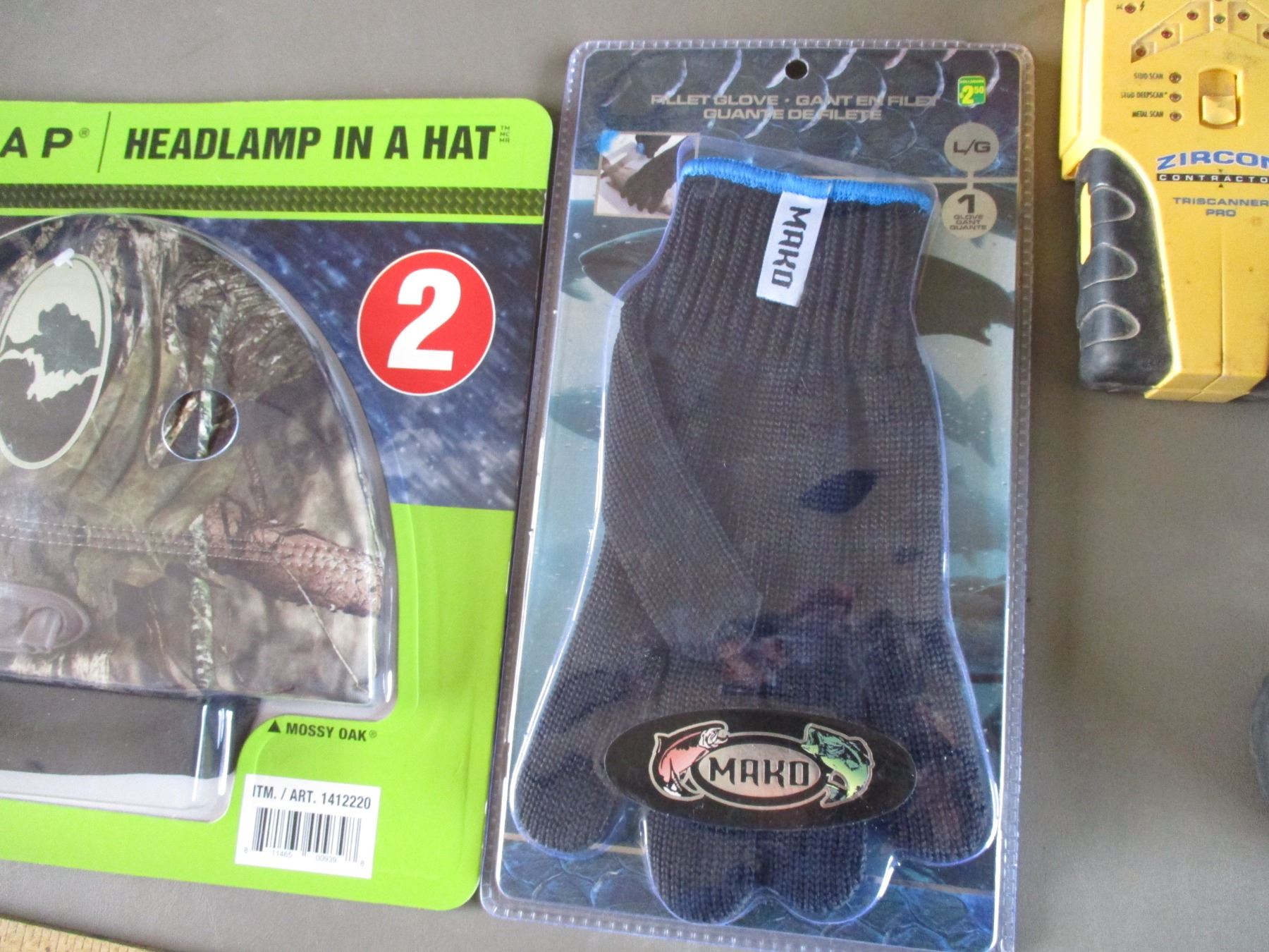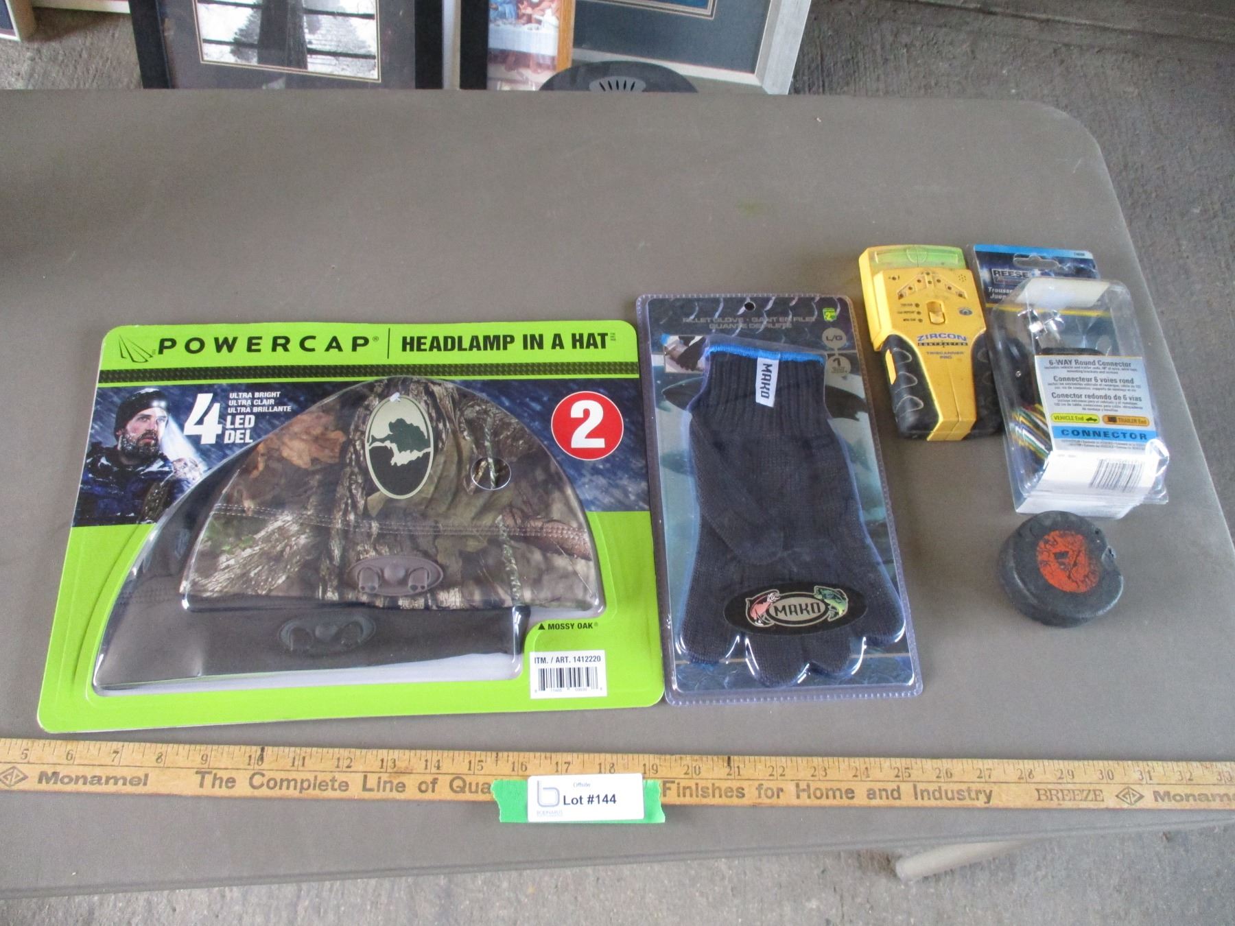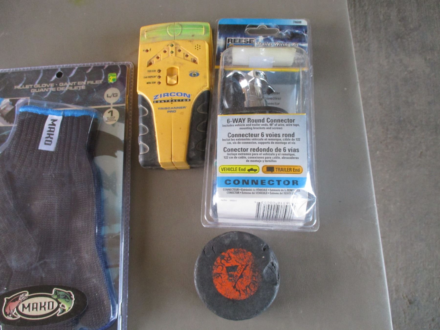 Reese 6 way Trailer Wiring Kit, Stud Finder, Filleting Glove, Lighted Camo Toque(Beanie) & Used Hock