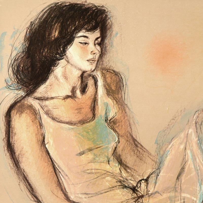 "Reflections" is a limited edition lithograph on paper by Pecard, numbered and hand signed by the artist. Measures approx. 22" x 30" (border). 19" x 27" (image).