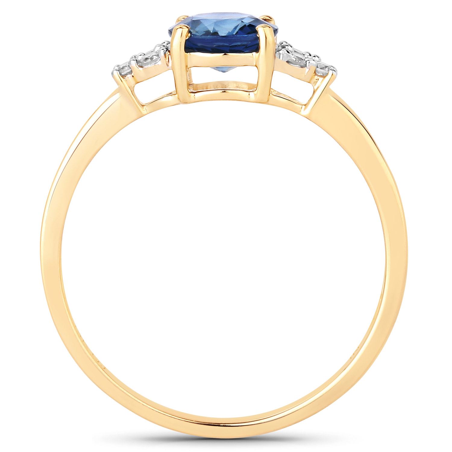 This 14 karat yellow gold ring features a 1.00 carat, round, faceted, genuine, blue sapphire that is prong-set between .08 carats total weight of round, brilliant-cut, H-I color, I1 clarity diamonds that resemble epaulettes on the shoulders! It may be dainty, but it's looking quite regal! The diamond shoulders then slope to the shank for a US size 6.& nbsp; See below for sizing options and other information!