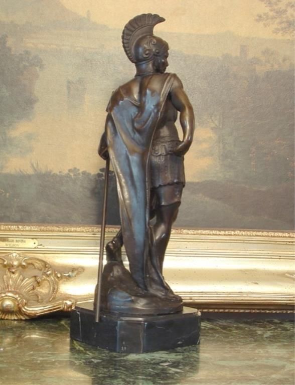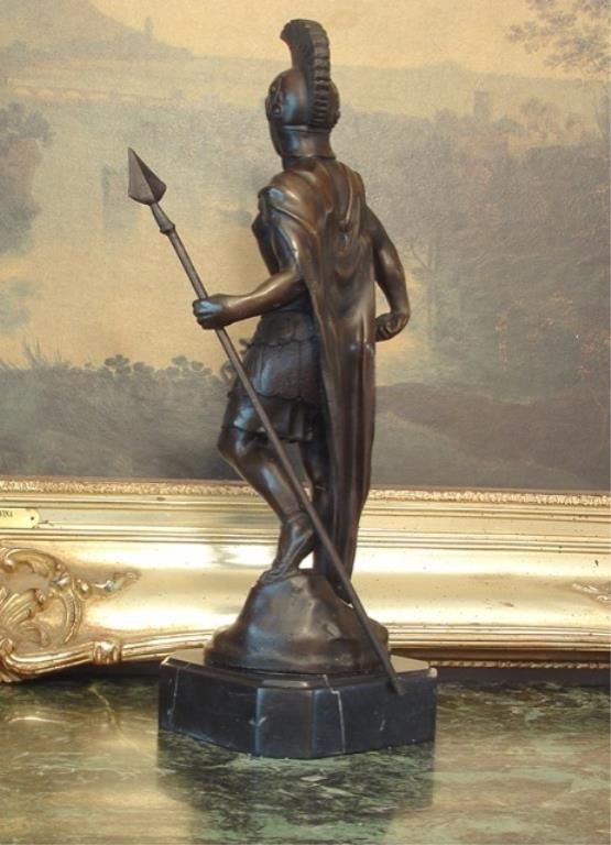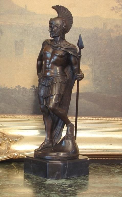 Spartacus Greek Warrior Bronze Sculpture After Noee 16H x 7W x 5D 12 lbs This bronze sculpture was produced using the "Lost Wax" casting method. The "Lost Wax" Cast method is the most precise metal casting technique in existence, ensuring exquisite detail of the original host model which is usually sculpted in clay or wax. This "Lost Wax" casting method is an extremely labor intensive and expensive process, but the end results produce a Heirloom Quality Masterpiece!