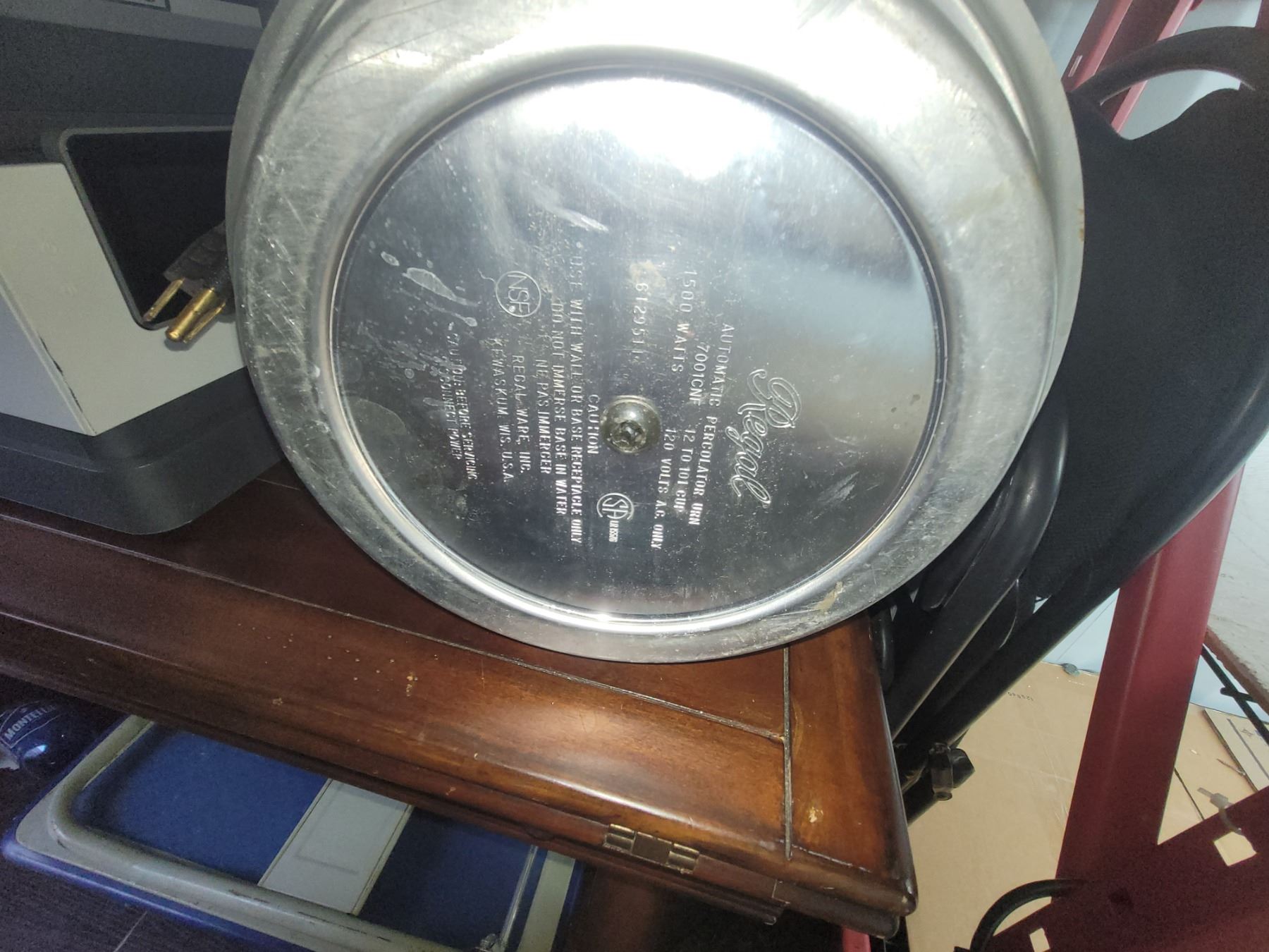 Regal coffee urn/percolator untested. Pickup at 10 am
