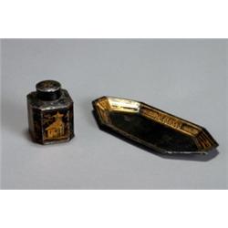 Regency Chinoiserie Painted Black T(le Tea Caddy and a Pentray
