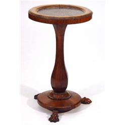 Regency rosewood occasional table with marbled top on a faceted turned column circular platform with paw feet