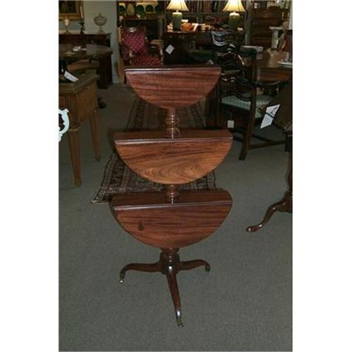 A lovely Regency three-tier drop leaf dumb waiter of mahogany.