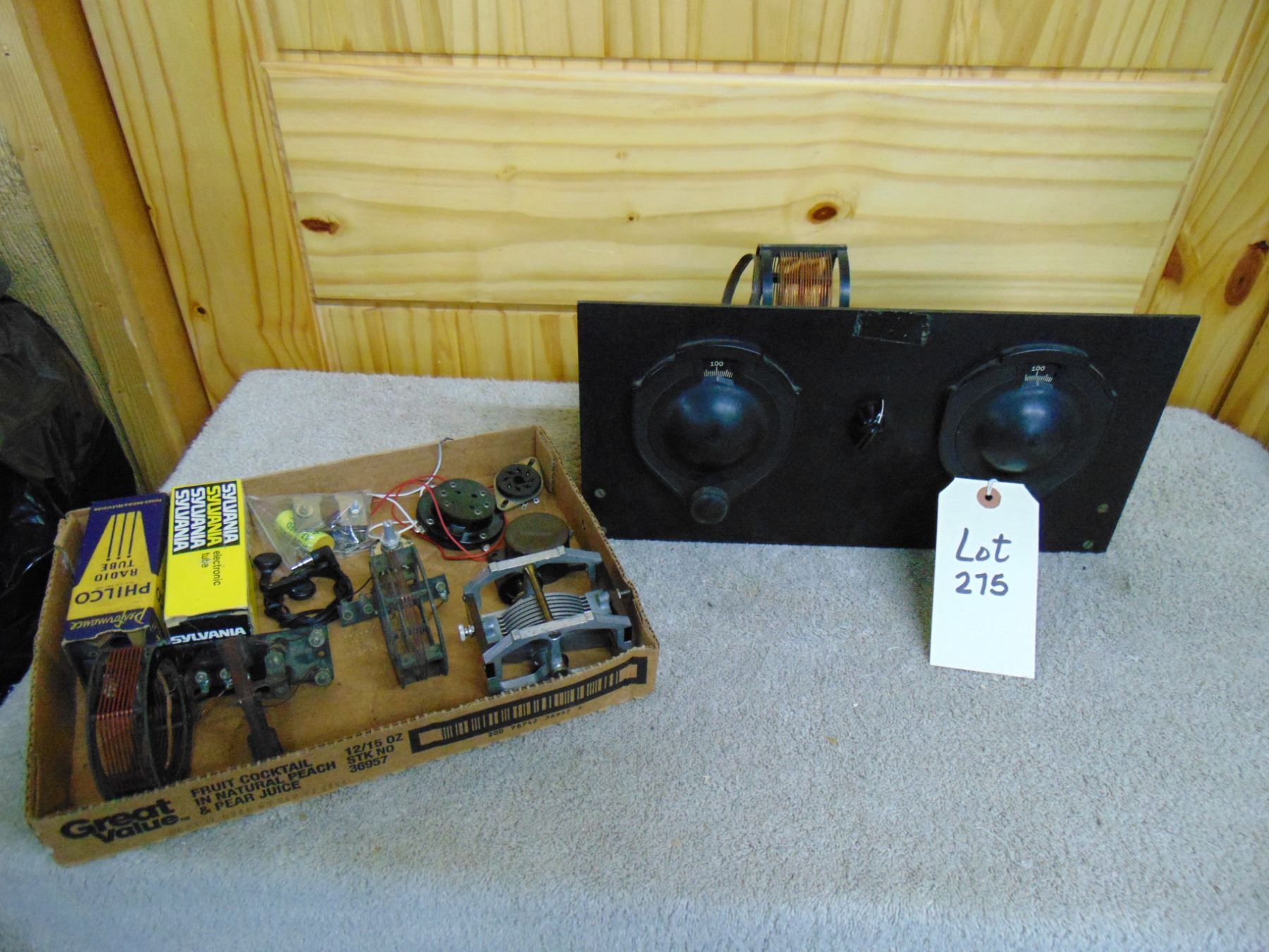 One tube Aero regen set; probably a kit; includes 2 extra coils and parts