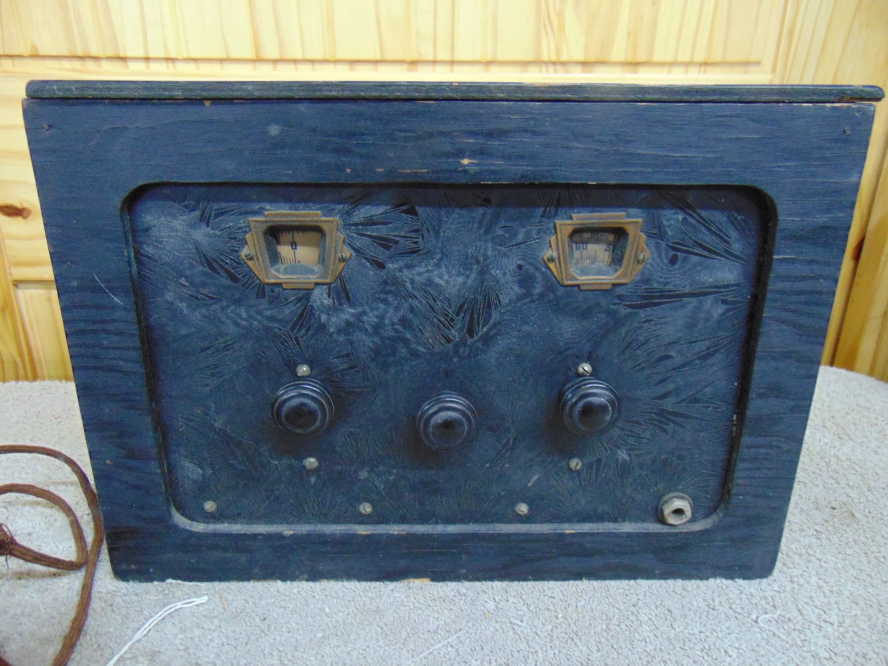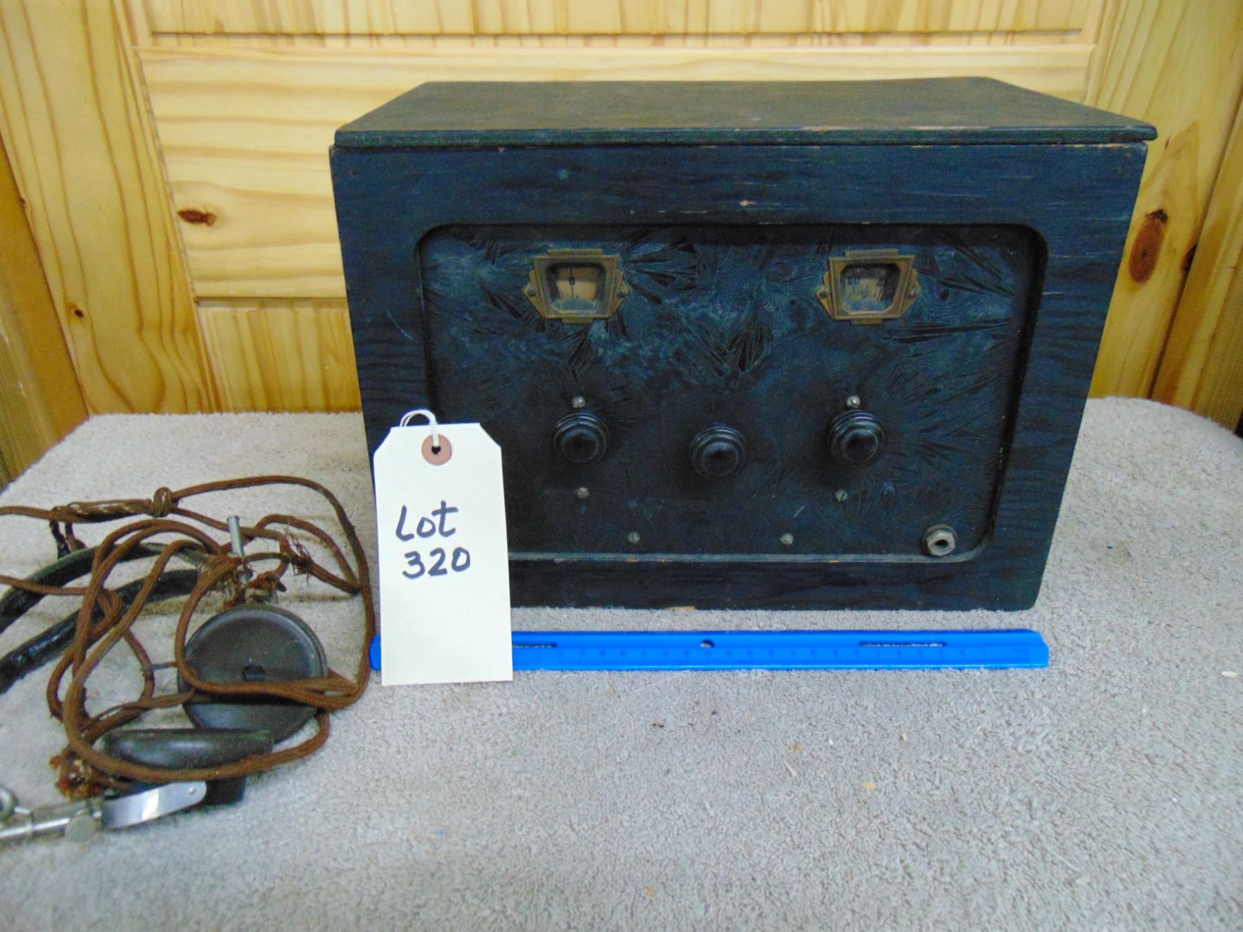 Regen, possibly kit, two tube, includes plug-in coils; lot includes pair of vintage headphones (AT&T, model 528)