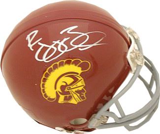 In 2003, Reggie Bush was a consensus First-team Freshman All-American selection and became the first Trojan since Anthony Davis in 1974 to lead the Pac-10 in kickoff returns. His 1,331 all-purpose yards set a USC freshman record. In 2005 Bush was a unanimous First-team All-American and winner of the Heisman Trophy. He was also named the Associated Press College Football Player of the Year, Pigskin Club of Washington D.C. Offensive Player of the Year, and Touchdown Club of Columbus Player of the Year. Bush also won the Walter Camp Award and the Doak Walker Award; which is given to the nation's best running back. Reggie Bush has hand autographed this Riddell USC Trojans mini helmet. Bush Hologram and Certificate of Authenticity from Athlon Sports.