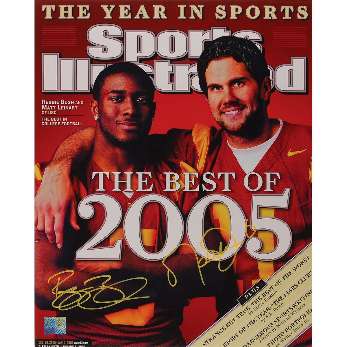 Color satin-finish 16 x 20 photo of a Sports Illustrated magazine cover featuring the pair in their USC days, signed in yellow ink by both. In fine condition.