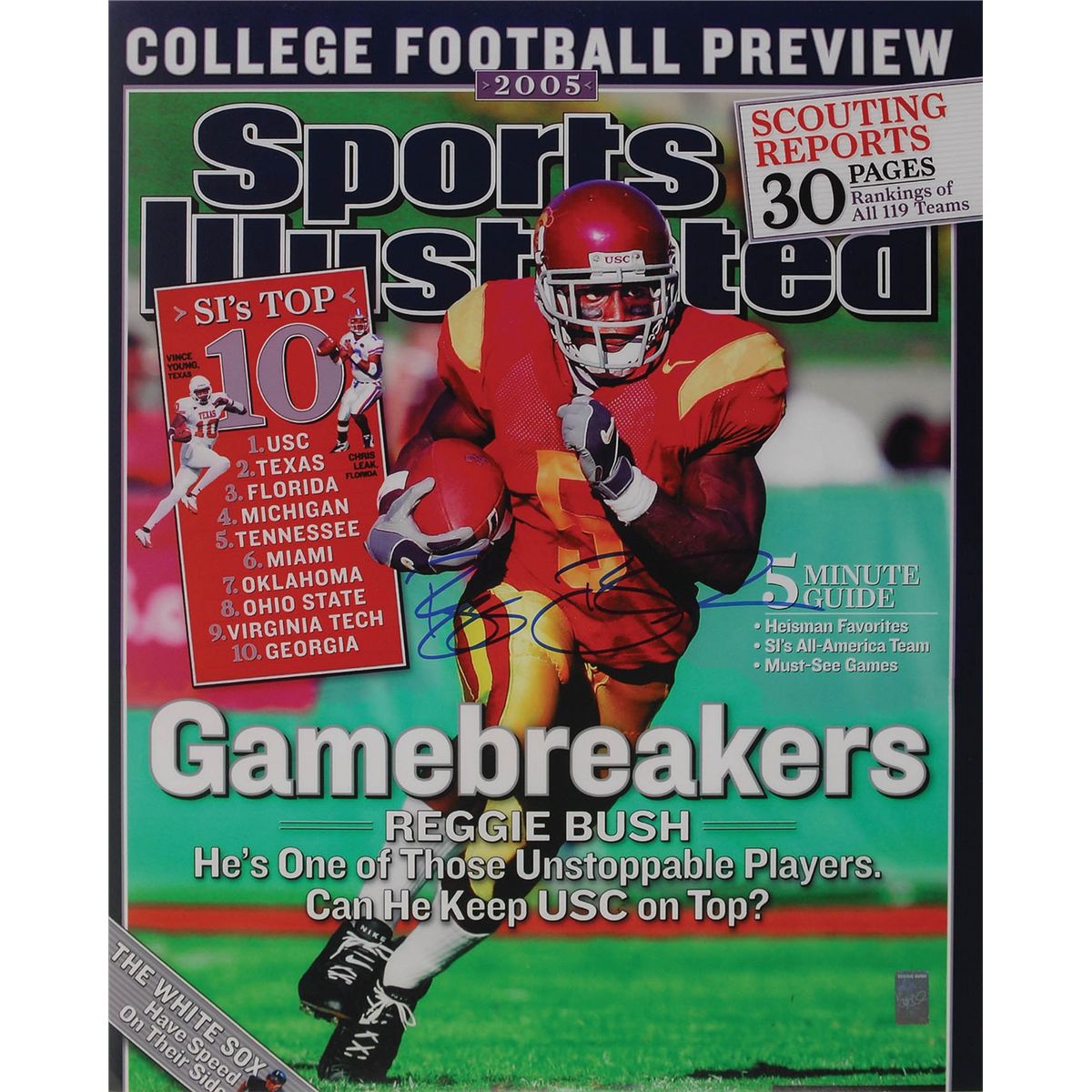 Color satin-finish 16 x 20 photo of the front cover of the Sports Illustrated 2005 College Football Preview, signed in blue felt tip. In very fine condition.