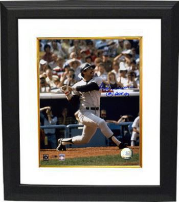 Reggie Jackson, or "Mr. October" for his outstanding performances in the postseason, is baseball's most memorable clutch player. In 27 Fall Classics, the 1973 AL Most Valuable Player hit 10 homers and had a .357 batting average. With 563 career home runs Jackson became the first player to hit 100 or more homers with three different teams, the Oakland A's, the New York Yankees and the California Angels. In 1993 Mr. October became an official member of the Baseball Hall of Fame. Reggie Jackson has hand signed this New York Yankees 8X10 Photo with HOF 93 inscription. Certificate of Authenticity from Athlon Sports Collectibles. Custom White Mat and Premium Black Color Framed as shown.