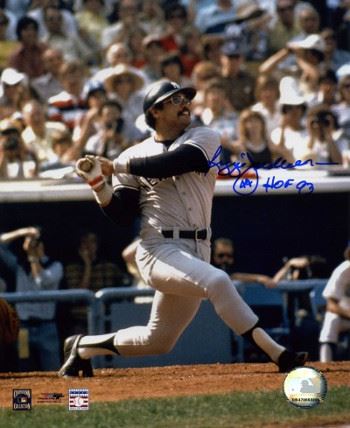 Reggie Jackson, or "Mr. October" for his outstanding performances in the postseason, is baseball's most memorable clutch player. In 27 Fall Classics, the 1973 AL Most Valuable Player hit 10 homers and had a .357 batting average. With 563 career home runs Jackson became the first player to hit 100 or more homers with three different teams, the Oakland A's, the New York Yankees and the California Angels. In 1993 Mr. October became an official member of the Baseball Hall of Fame. Reggie Jackson has hand signed this New York Yankees 8X10 Photo with HOF 93 inscription. Certificate of Authenticity from Athlon Sports Collectibles.