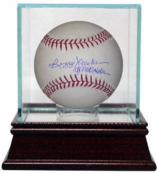 Reggie Jackson, or "Mr. October" for his outstanding performances in the postseason, is baseball's most memorable clutch player. In 27 Fall Classics, the 1973 AL Most Valuable Player hit 10 homers and had a .357 batting average. With 563 career home runs Jackson became the first player to hit 100 or more homers with three different teams, the Oakland A's, the New York Yankees and the California Angels. In 1993 Mr. October became an official member of the Baseball Hall of Fame. Reggie Jackson has hand signed this Official Major League Baseball with Mr. October Inscription. Steiner Sports Hologram and Certificate of Authenticity. Glass Display Case shown IS included.