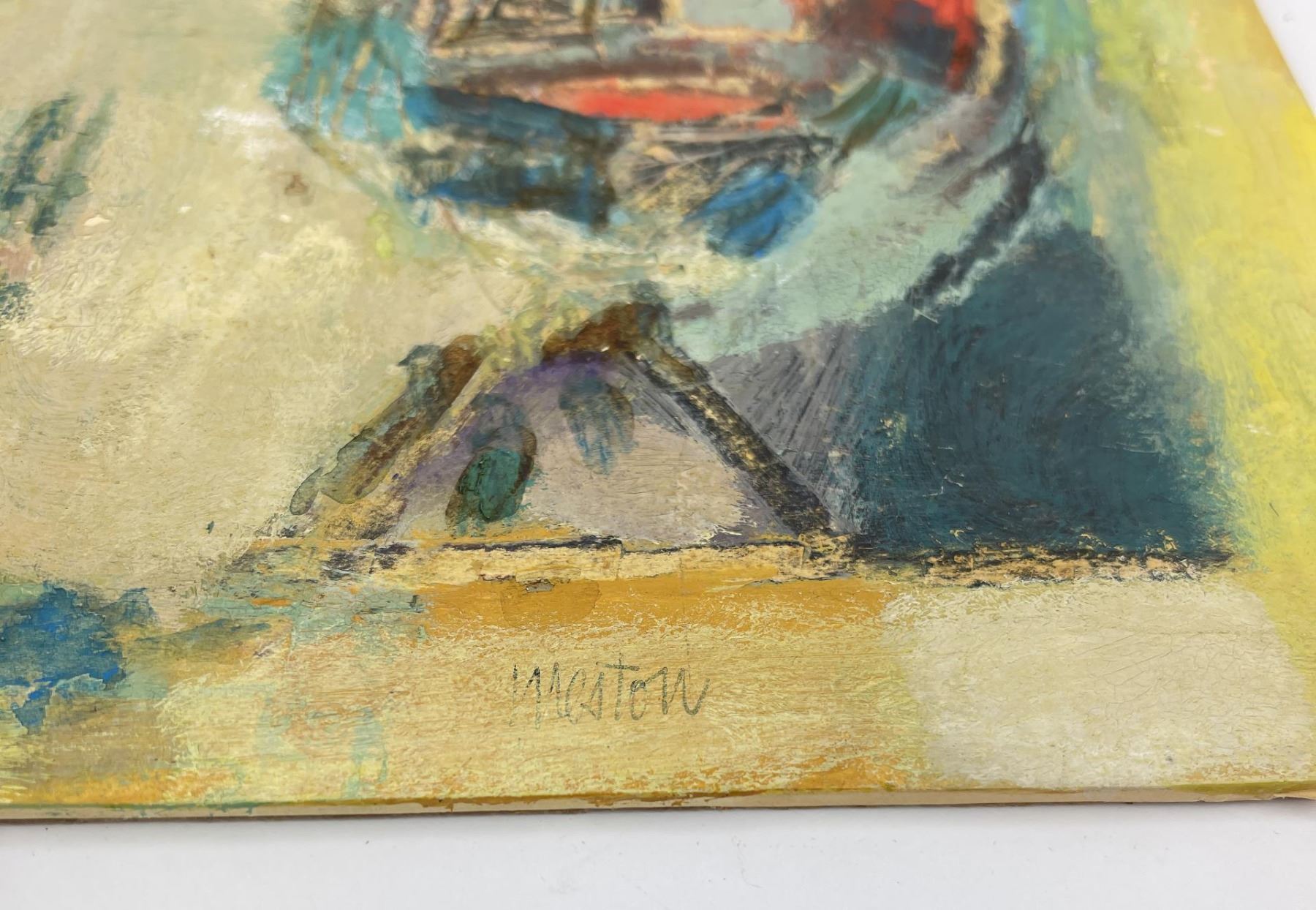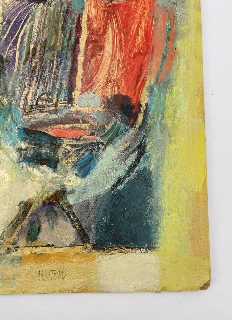 Painting Very nice Abstract Cubist painting. Oil on Board. 8.25" by 10.5". Reginald Weston was born in London (1909 d. Paris 1967). He moved at the age of six to Egypt. He visited Paris for the first time at the age of seventeen but the stay was short and he left to live in Palestine in 1936 becoming a journalist and a founding editor of the Jerusalem Post. Weston had already begun to paint and his exhibition at the Schlosser Gallery in Jerusalem in 1939 was a landmark event as the first exhibition of local abstract art in what was then Palestine firmly inscribing him in the avant-garde. Shortly afterward he took a post teaching at the Bezalel Art School where he remained until deciding to move himself wife and two children to Paris where he took up the life of a full-time artist in the cauldron of creativity that was Montparnasse in the late 1940's & 1950's. His success was immediate with an exhibition at the Dina Vierny Gallery in 1948. During the 1950's while maintaining ties with Israel Weston also exhibited internationally in London New York Brussels and Tel-Aviv. In 1955 Weston took a major commission painting large format murals on panels for the Israeli shipping company Z.I.M. and the Elie de Rothschild Foundation. The works were on paper but set onto Formica panels and required the use of factories for fabrication. This was a departure from Weston's normal small format style of working usually on paper. Following his passing in 1967 Weston's wife Miriam made his former studio in Tel-Aviv available as a creative arts center for young talent and disabled artists and a number of exhibitions were held there in what was known as "the Atelier Reggie Weston" from 1972 - 1994. He left a wife and two children one of whom Michael is also a painter living in Paris and Brittany and has had four solo exhibitions at Annandale Galleries. Reginald Weston had 17 exhibitions from 1939 - 1964. He was offered a beach property by the government in recognition of his service to the arts in Israel. Notable exhibitions include Schlosser Gallery Jerusalem (1939) Galerie Dina Vierny Paris (1948) Redfern Gallery London (1950-1960) Galerie Georges Giroux Brussels (1958) F.A.R. Gallery New York (1960) a major retrospective at the Tel-Aviv Museum of Modern Art (1963) and the Helena Rubinstein pavilion Tel-Aviv (1963-4). Notable museum collections include Museum of Israel Jerusalem Museum of Modern Art Tel-Aviv and the Museum of Modern Art New York. His work is in numerous private collections in France USA and Israel including the Baron Elie de Rothschild and the famous violinist Isaac Stern.