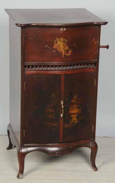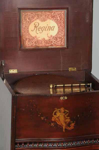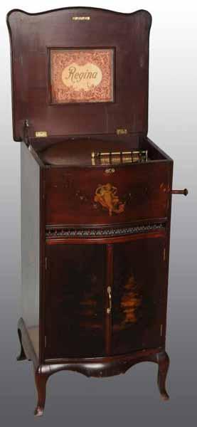 Description Mahogany. Rookwood case with 43 discs. Working. Condition (Fair). Size 15 - 1/2".