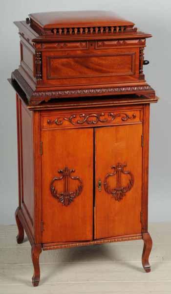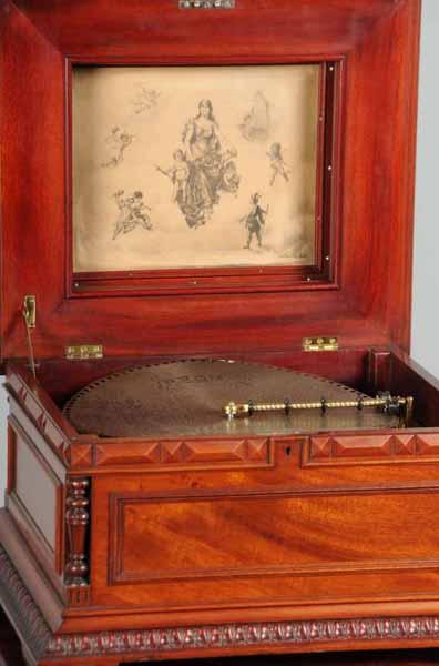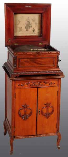 Description Mahogany with 78 discs. Working. Condition (Excellent). Size 15 - 1/2".